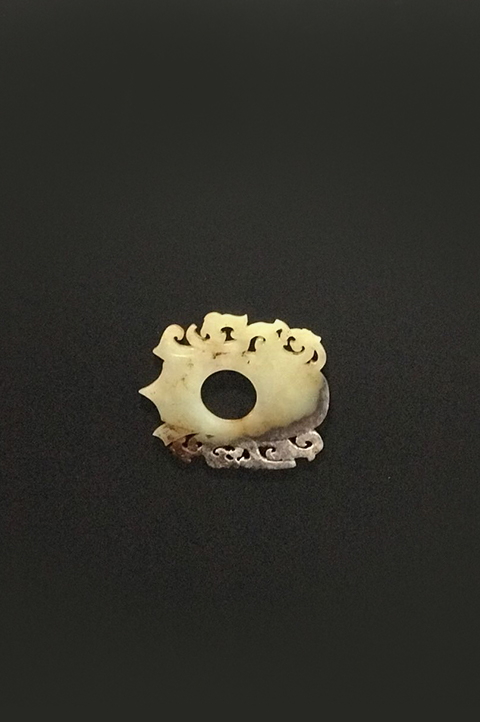 鸡心佩又名“心形佩”、“鴒形佩”,由战国时期的玉耦演变而来,中部是一个盾牌或鸡心状的玉饰,中央有一圆形穿孔,中部玉饰两侧镂雕龙、云、螭虎、鸟等纹样。鸡心佩是汉代最富特色的佩饰,以后历代都有大量仿制品出现。西汉中期以前,鸡心佩造型简单,西汉晚期到东汉,鸡心佩呈扇面弧状,纹饰繁缛。